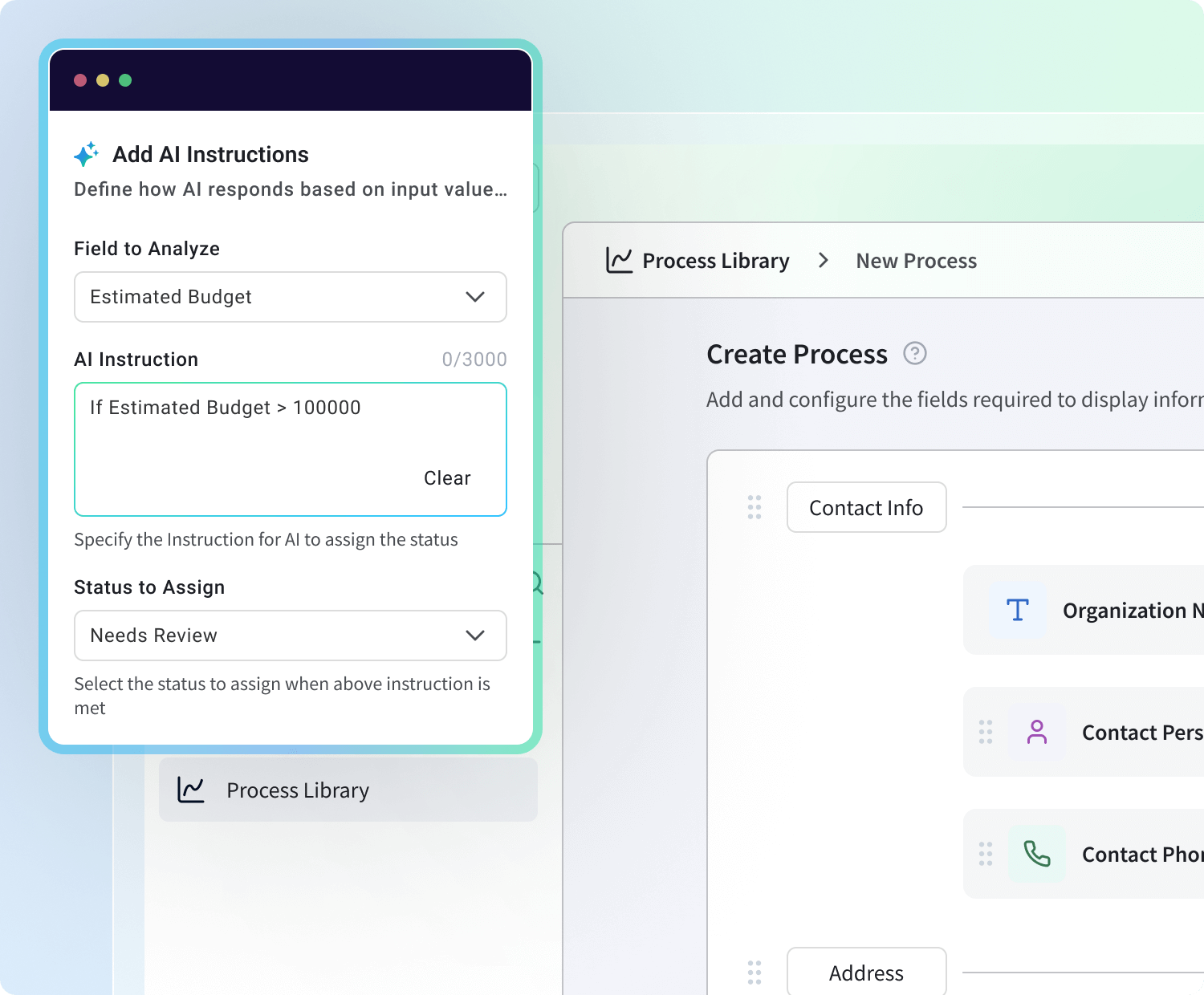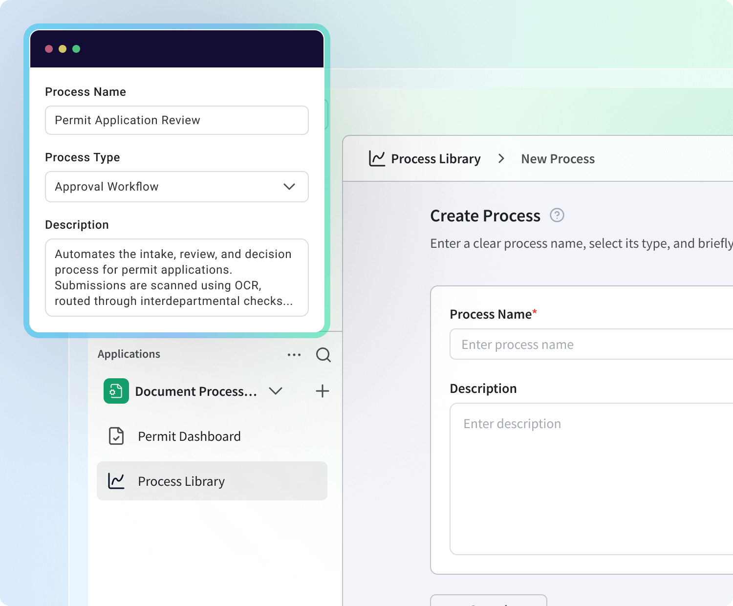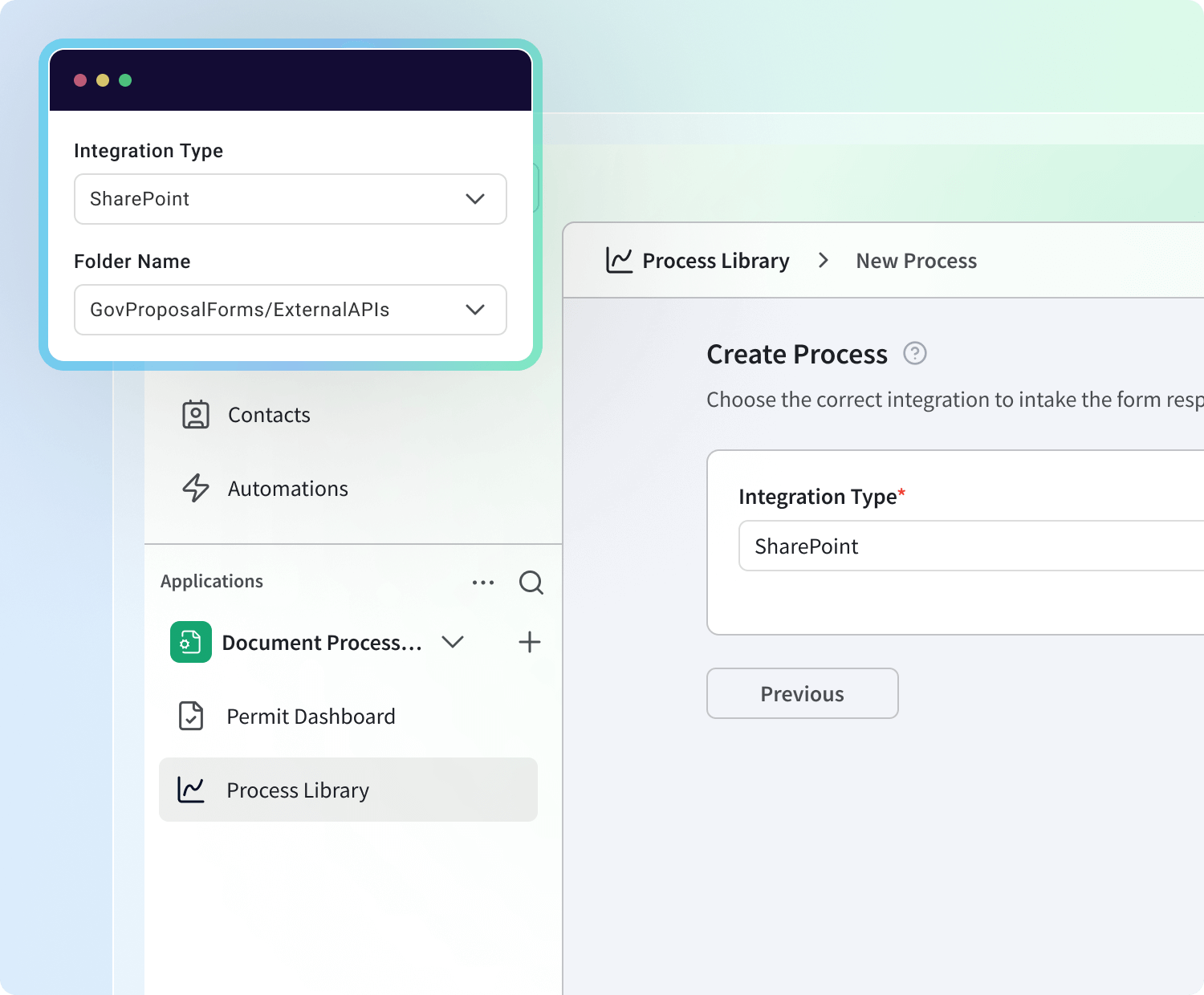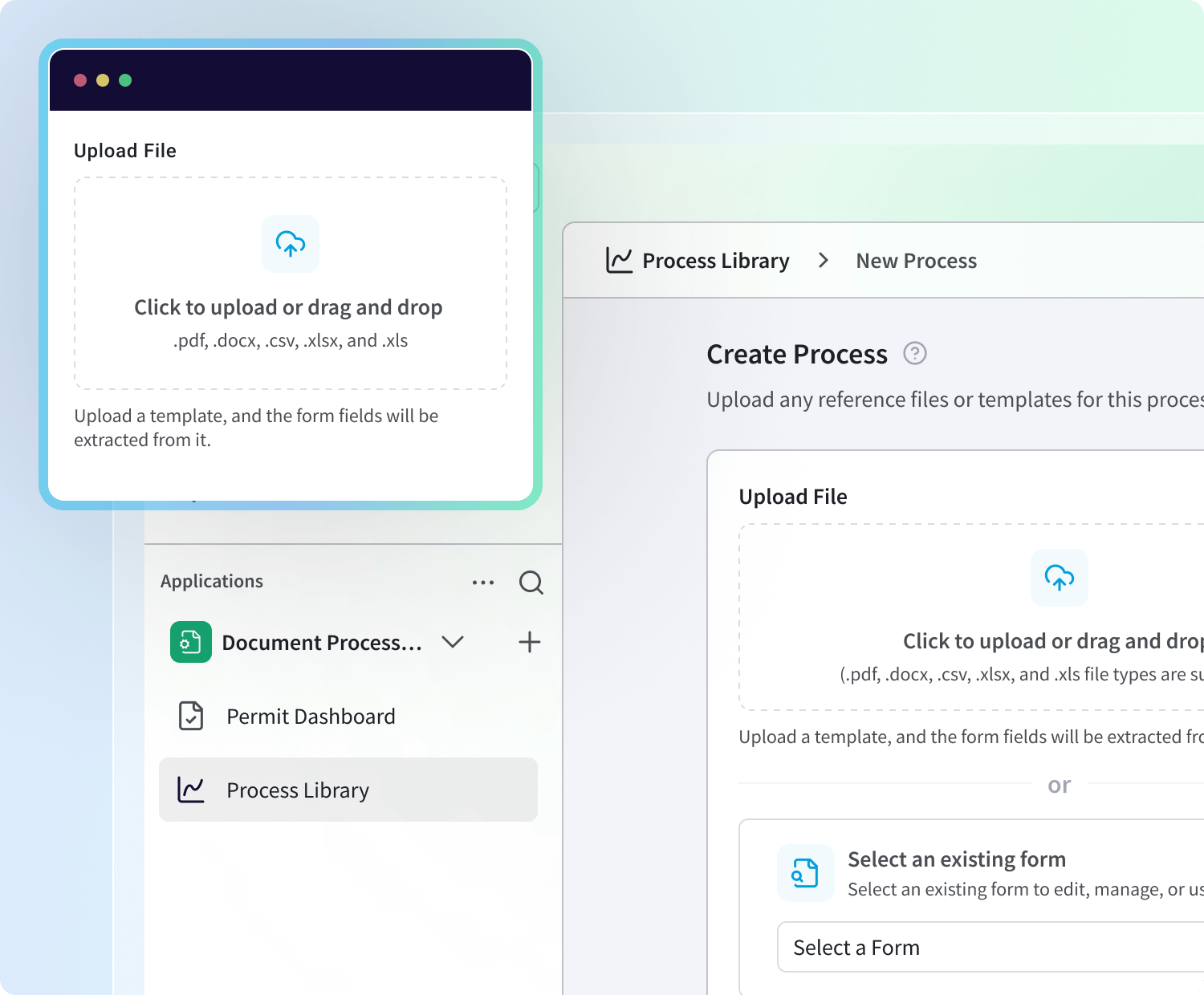 Receive documents via uploads, email, chatbot, or system integrations. Supports PDFs, Word files, images, and more.